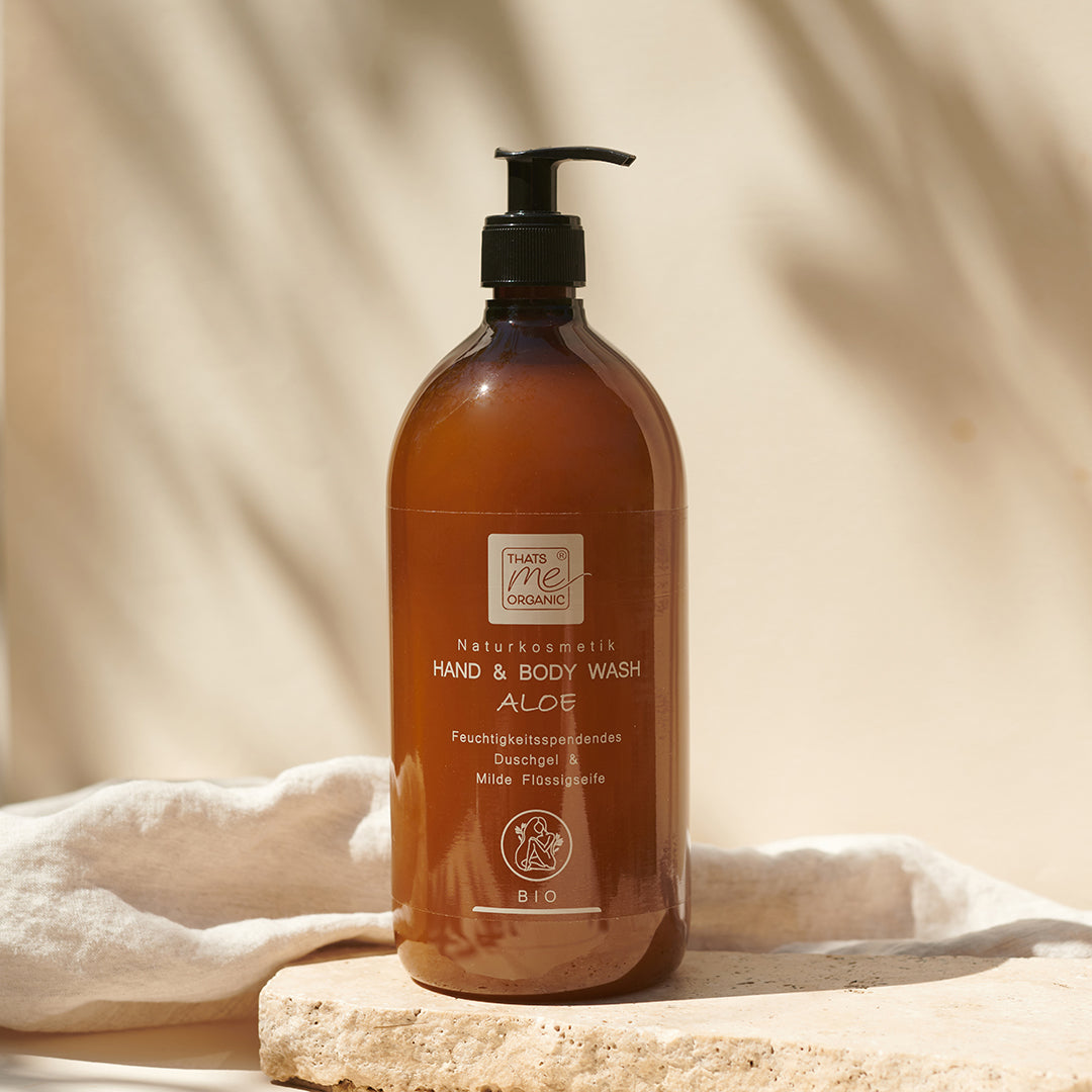 Our new ORGANIC Hand & Body Wash natural cosmetics can be used as a gentle hand wash, shower gel or as a mild liquid soap. It contains extremely mild sugar surfactants for gentle skin cleansing for the whole family.