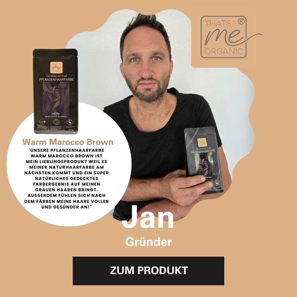The 'warm morocco brown' is mixed yellowish - not reddish - which creates a slight warmth in the color. The “warm morocco brown” also covers gray hair very well, remains slightly lighter on your gray hair parts, this mottled look creates the impression of gentle strands, like all herbal hair color shades. The longer the exposure time, the darker, richer, more opaque and longer lasting the color result will be. Please follow our instructions carefully. The instructions are included in every color pack!