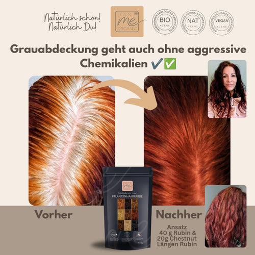 Graue Haare färben ohne Chemie: Wie deine Haare mit Pflanzenhaarfarbe lebendig und natürlich schön bleiben Bei uns...